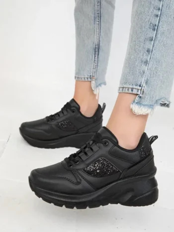 - Papucsan Siyah Simli Gizli Topuk Kadın Spor Ayakkabı