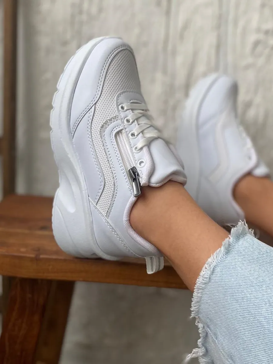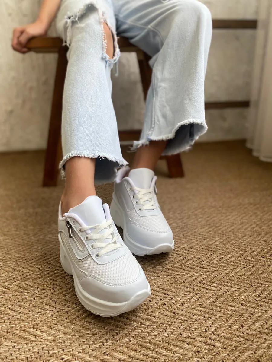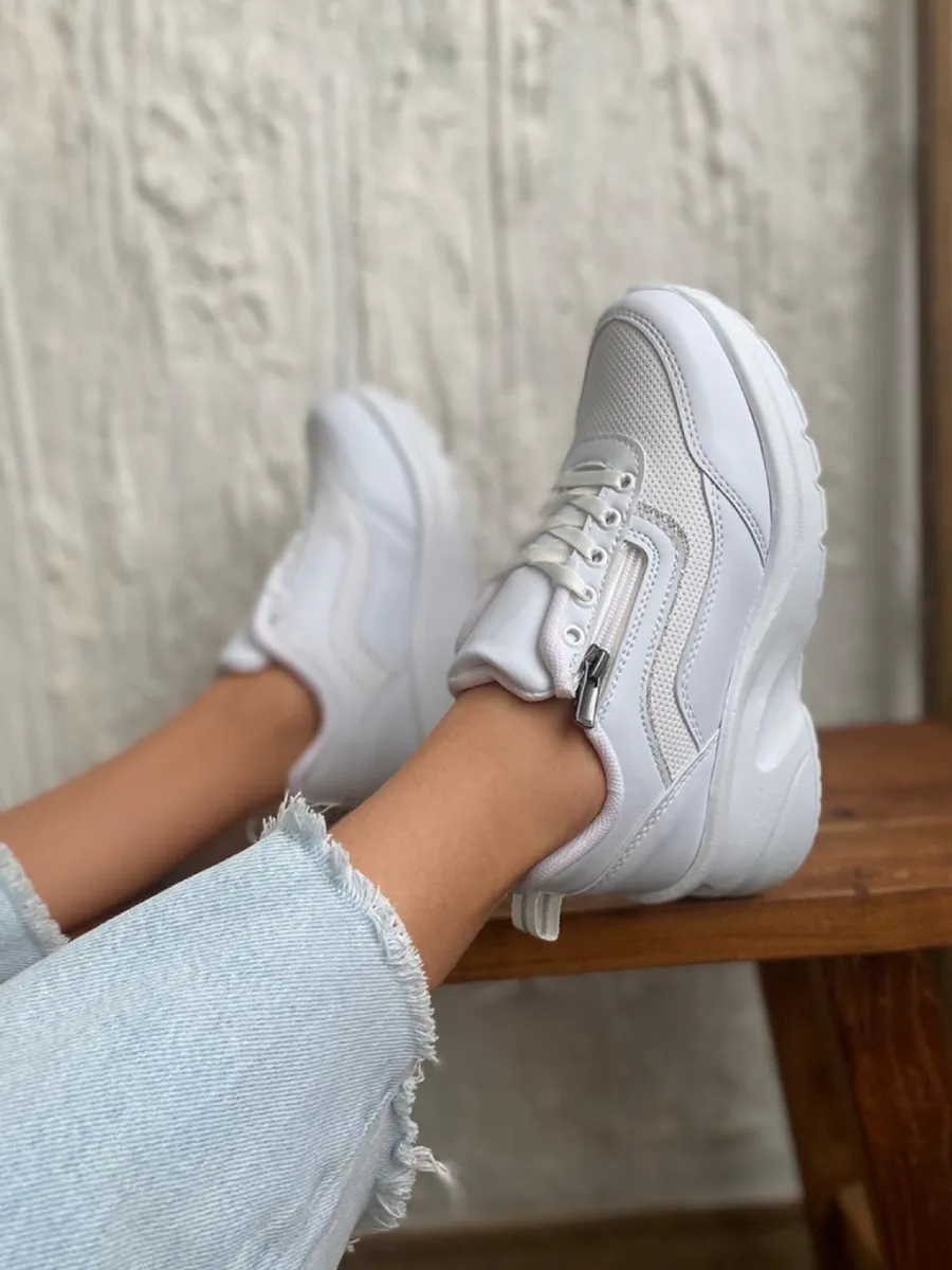 Papucsan Beyaz Mat Sim Çizgi Kadın Spor Ayakkabı