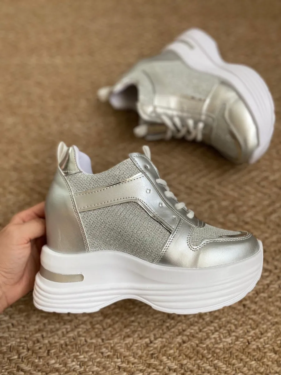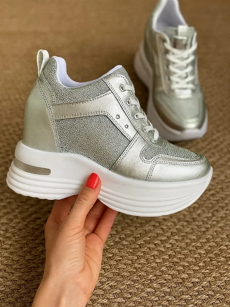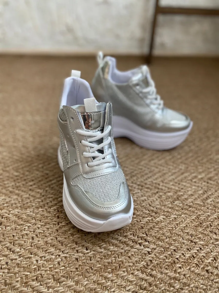 Papucsan Gümüş Gizli Topuk Kadın Spor Ayakkabı
